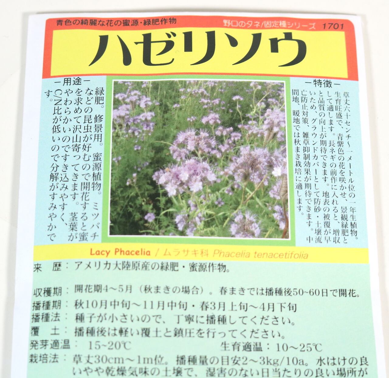 草丈60〜120cm位の一年生植物。生育旺盛で、青紫色の花を咲かせ、景観緑肥として適します。長ネギの前作に入れると、増収と品質の向上が期待できます。地表の被覆が早いため、グラウンドカバーとして防砂・土壌流亡防止対策、雑草抑制効果が期待できます。