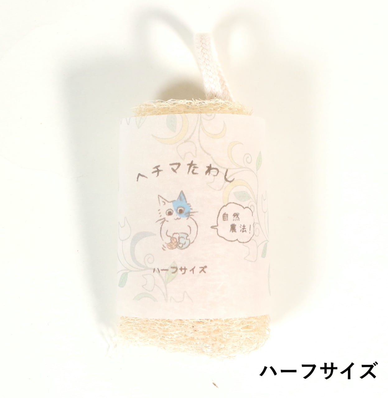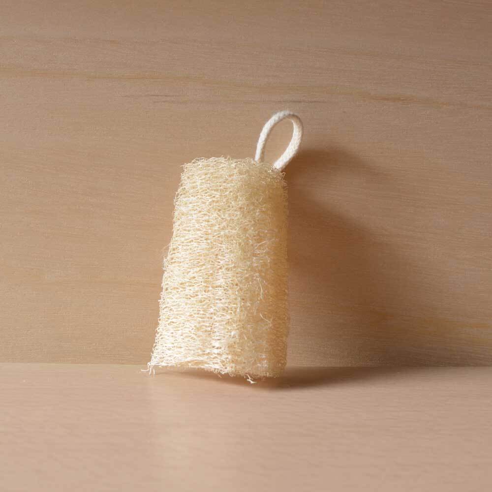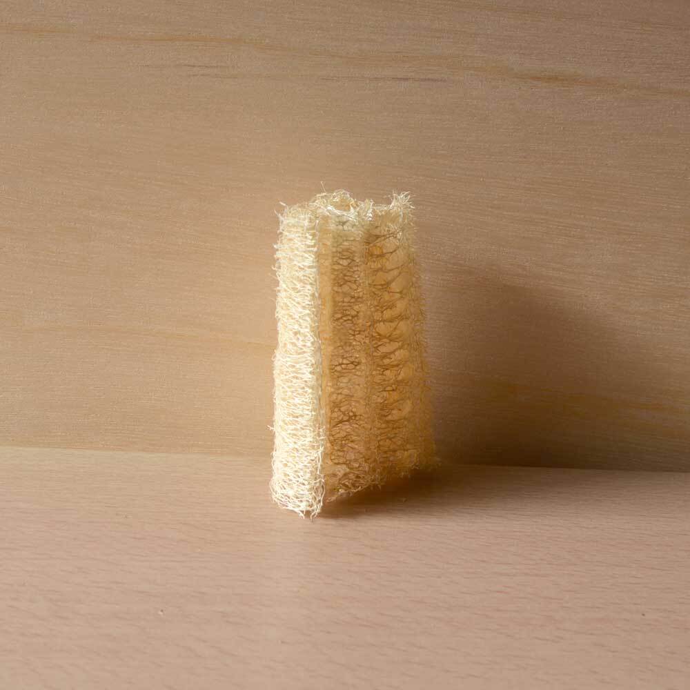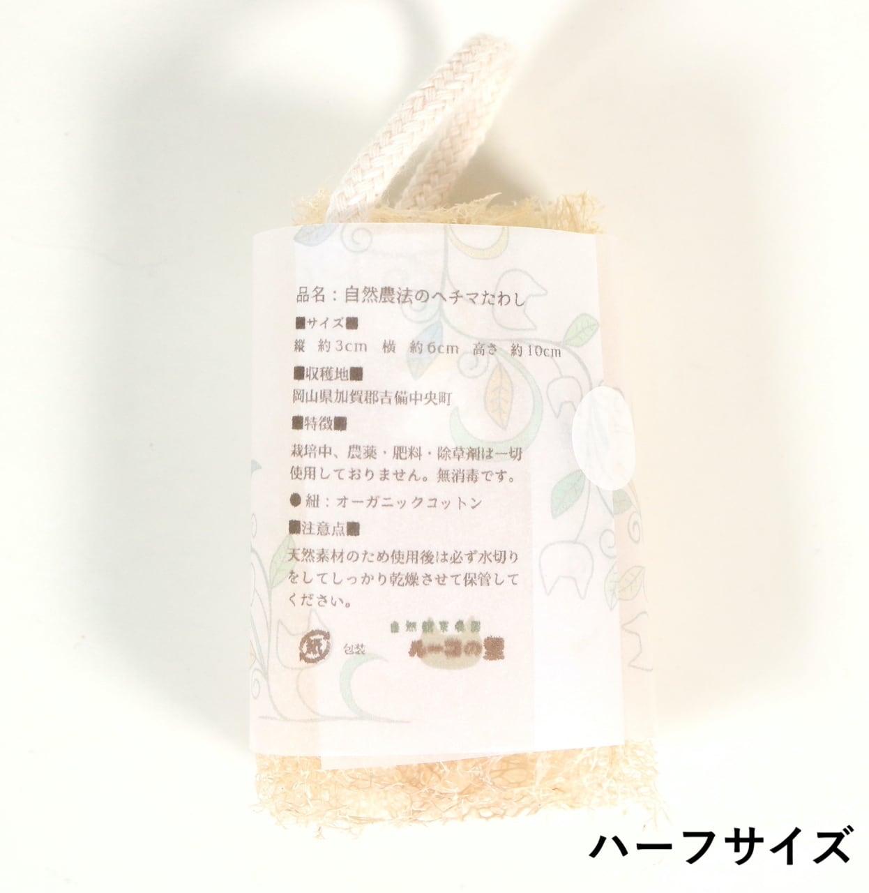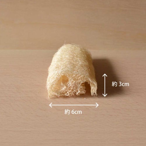 あるようでなかなか売っていないヘチマたわし。こちらハーフサイズで、手に収まる大きさです。
