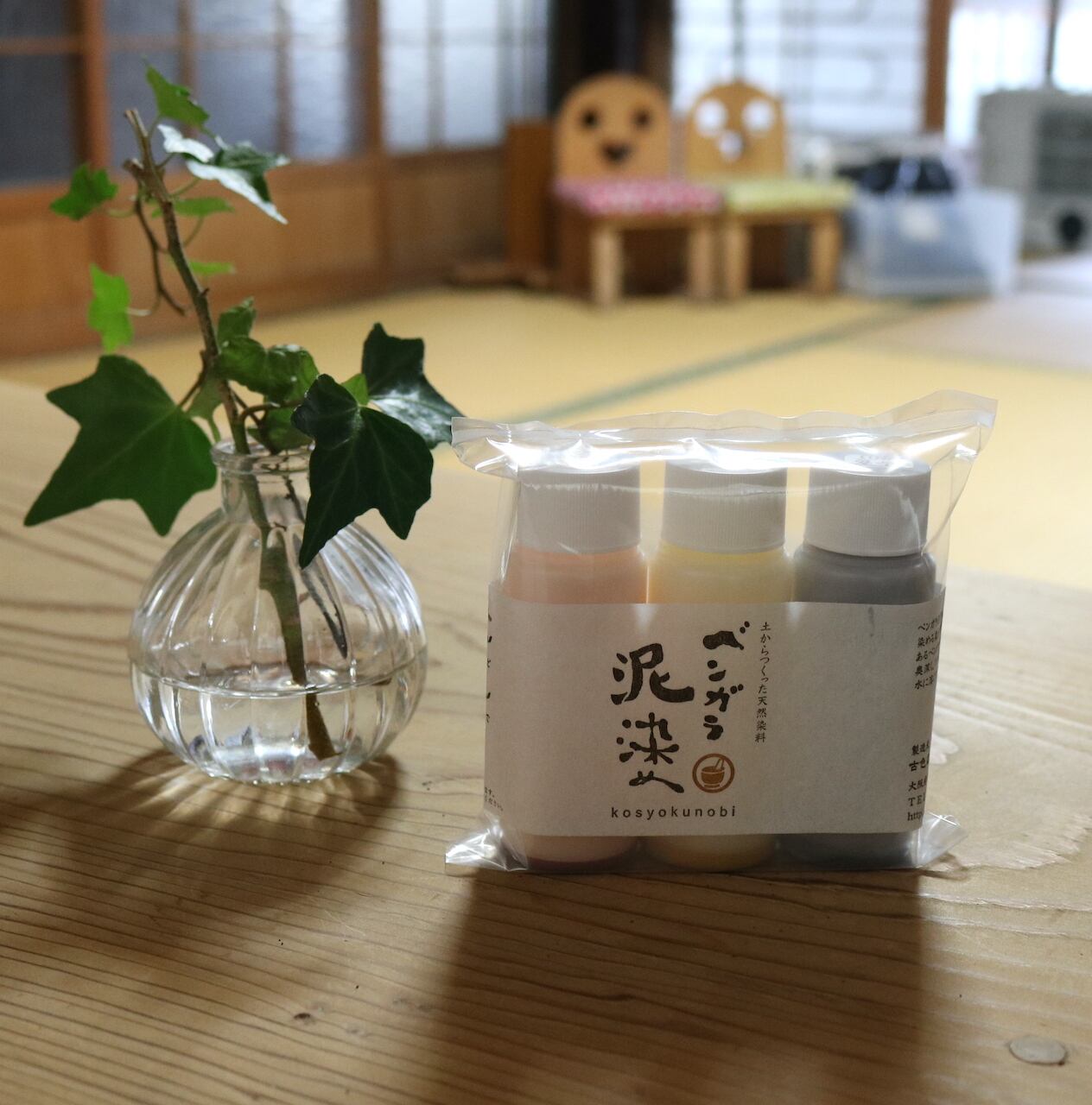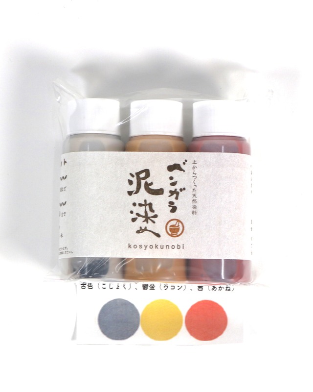 ベンガラ泥染は土から取れて土に還る染料です。媒染剤や火を使わず、少量の水で揉み込んで染める省エネルギーの染色です。1本50ml入ミニボトルの3本セット。いろんな色を試したい方や初めての方にオススメ!