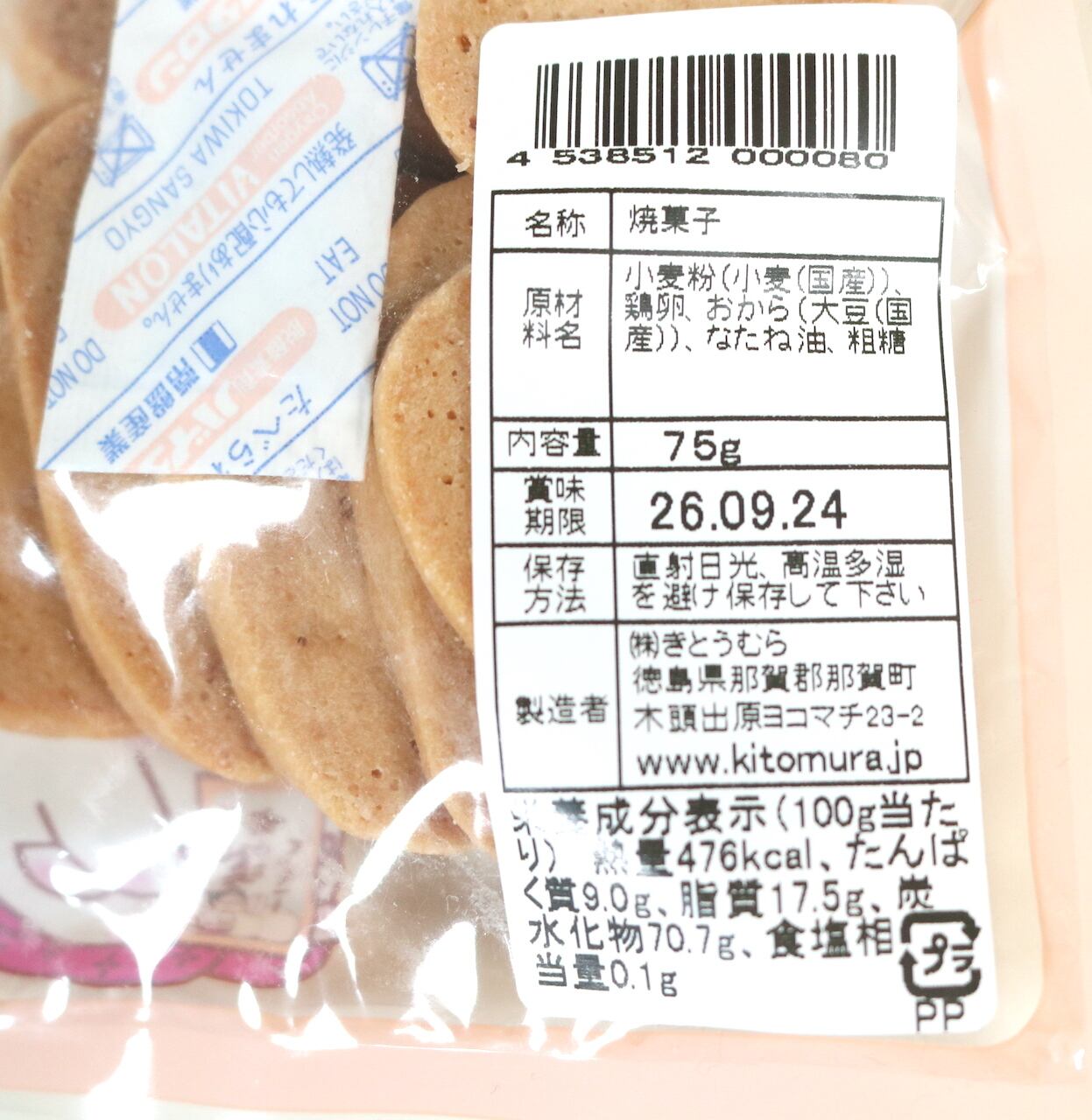【原材料名】小麦粉(小麦(国産)、鶏卵、おから(大豆(国産)、なたね油、粗糖