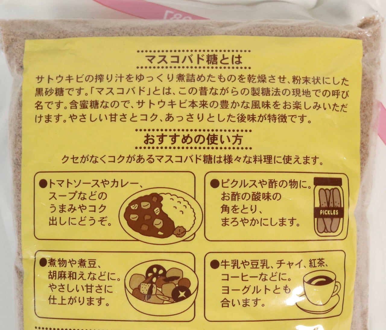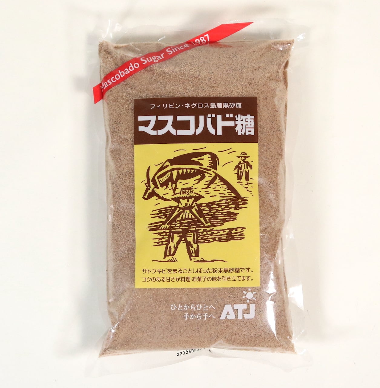 マスコバド糖って?マスコバド糖原料用のサトウキビはATMC(マスコバド製糖工場)との連携で計画的に収穫され、収穫後できるだけ短時間内に搾ったジュースを煮詰めて濃縮し、精製などすることなく攪拌しながら自然乾燥させて粉末の黒砂糖にします。こうした砂糖の製法が「マスコバド糖」と呼ばれています。糖蜜分離や精製を一切していない含蜜糖であるため、サトウキビの風味やミネラル分も残されています。やさしい甘さと糖蜜のコク、あっさりとした後味が特徴です。クセのない味はどんな料理にも使いやすく、さまざまな素材の味を一層引き立ててくれます。