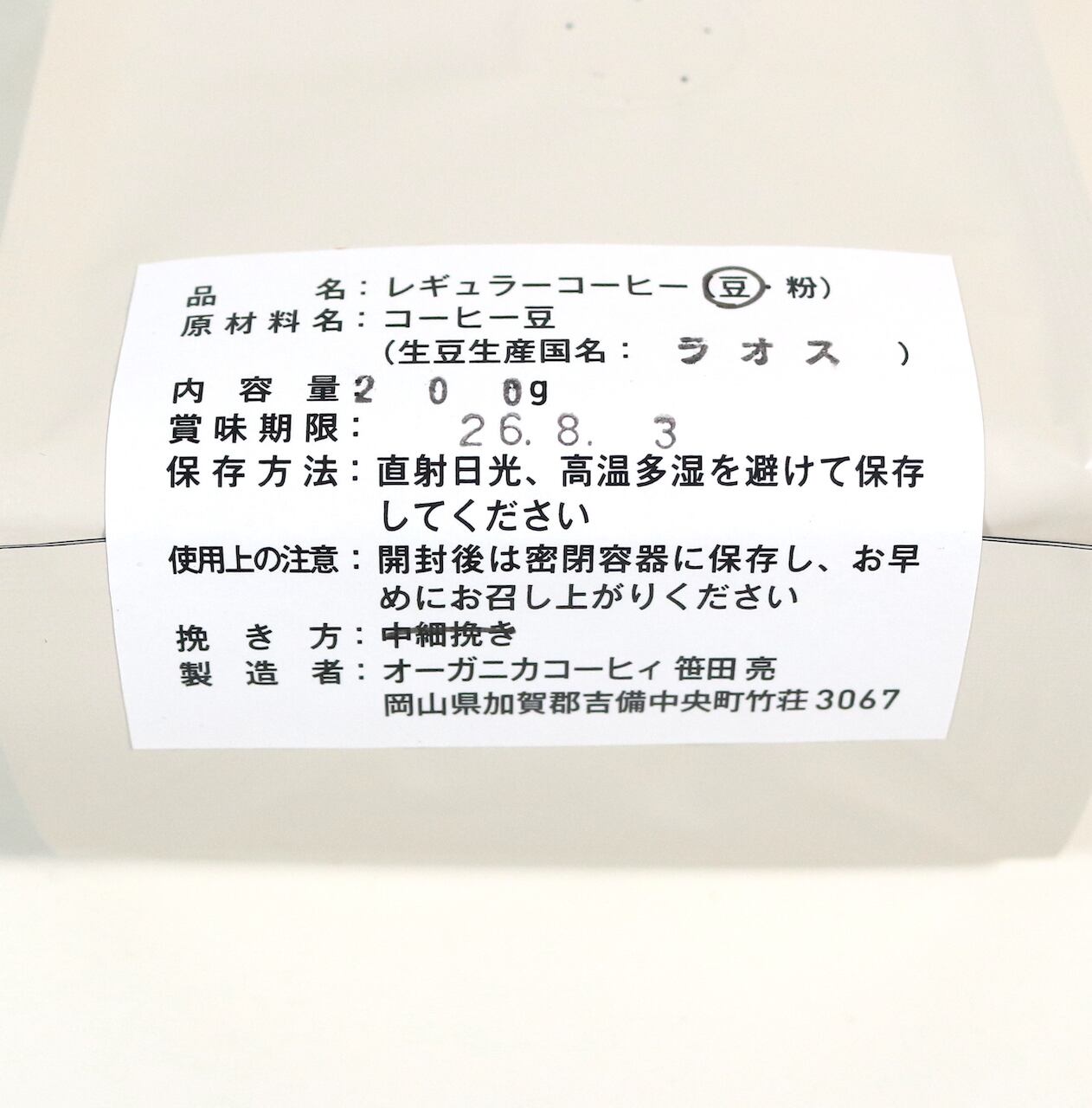 ラオス 自然農コーヒー ティピカ 中煎り 200g